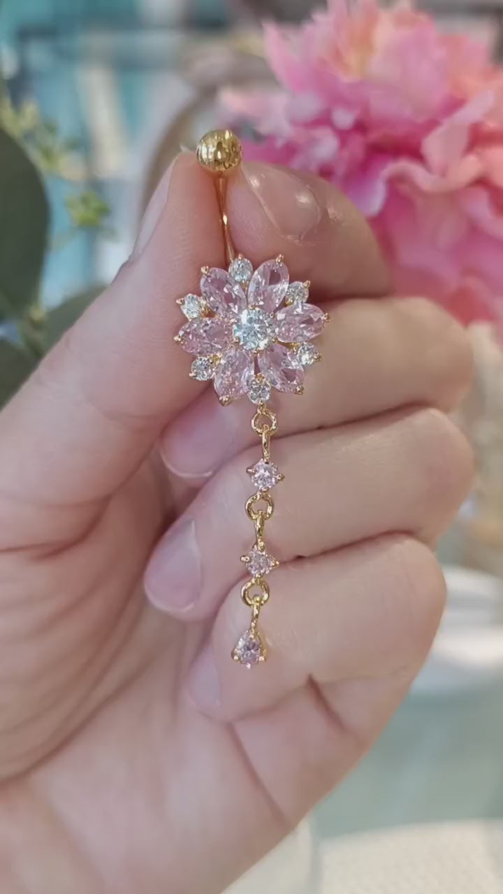 Gold-plated navel ring, Kinsley dangling flower navel ring